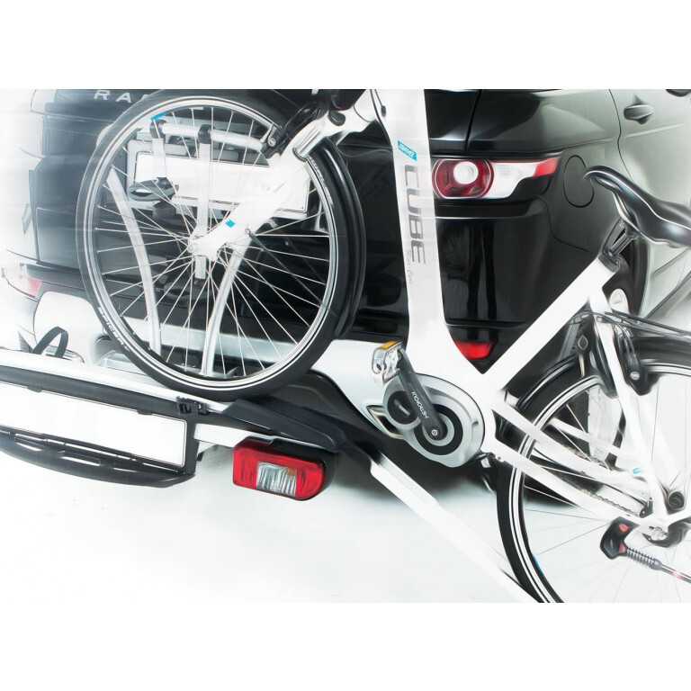 Designed with versatility in mind, the carrier boasts an extendable wheel tray to accommodate most frame sizes, along with integrated wheels for effortless transportation and storage. The red/green indicator ensures a secure attachment, while the elevated rear tray optimizes bike positioning for added convenience.
